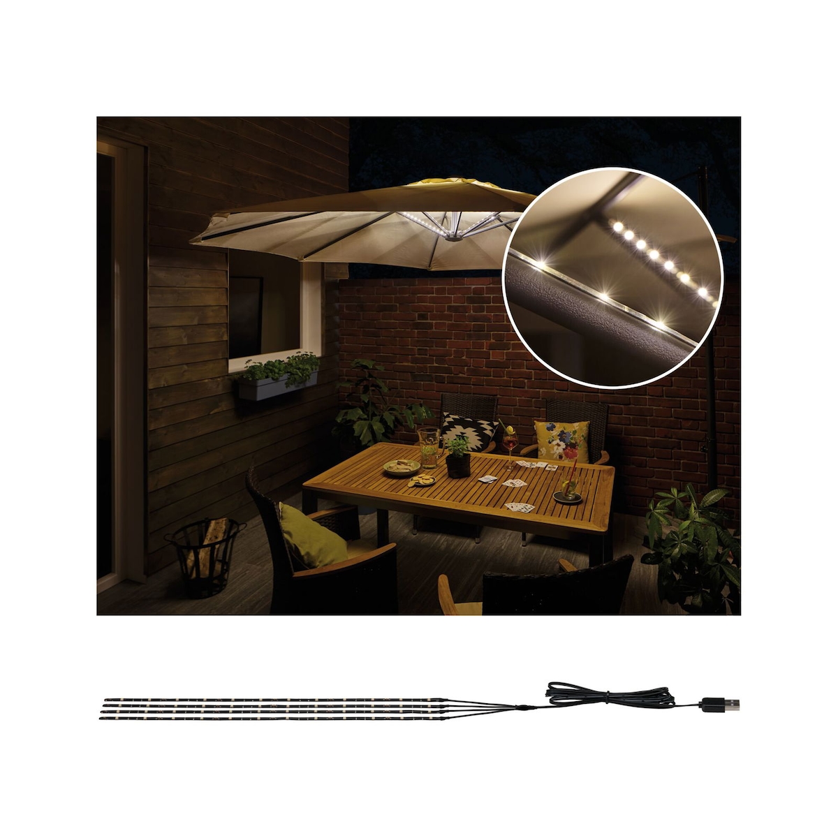 Paulmann USB LED Stripe Parasol-Light Schirmbeleuchtung Basisset 4x40cm 3000K 4x30lm Schwarz 94208