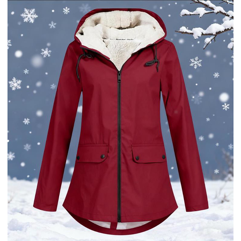 Women's Hoodie Jacket Waterproof Warm Zipper Pocket Fashion Plain Outdoor Street Daily Wear Zipper Regular Hooded Regular Fit Long Sleeve Outerwear Black White Purple Fall Winter
