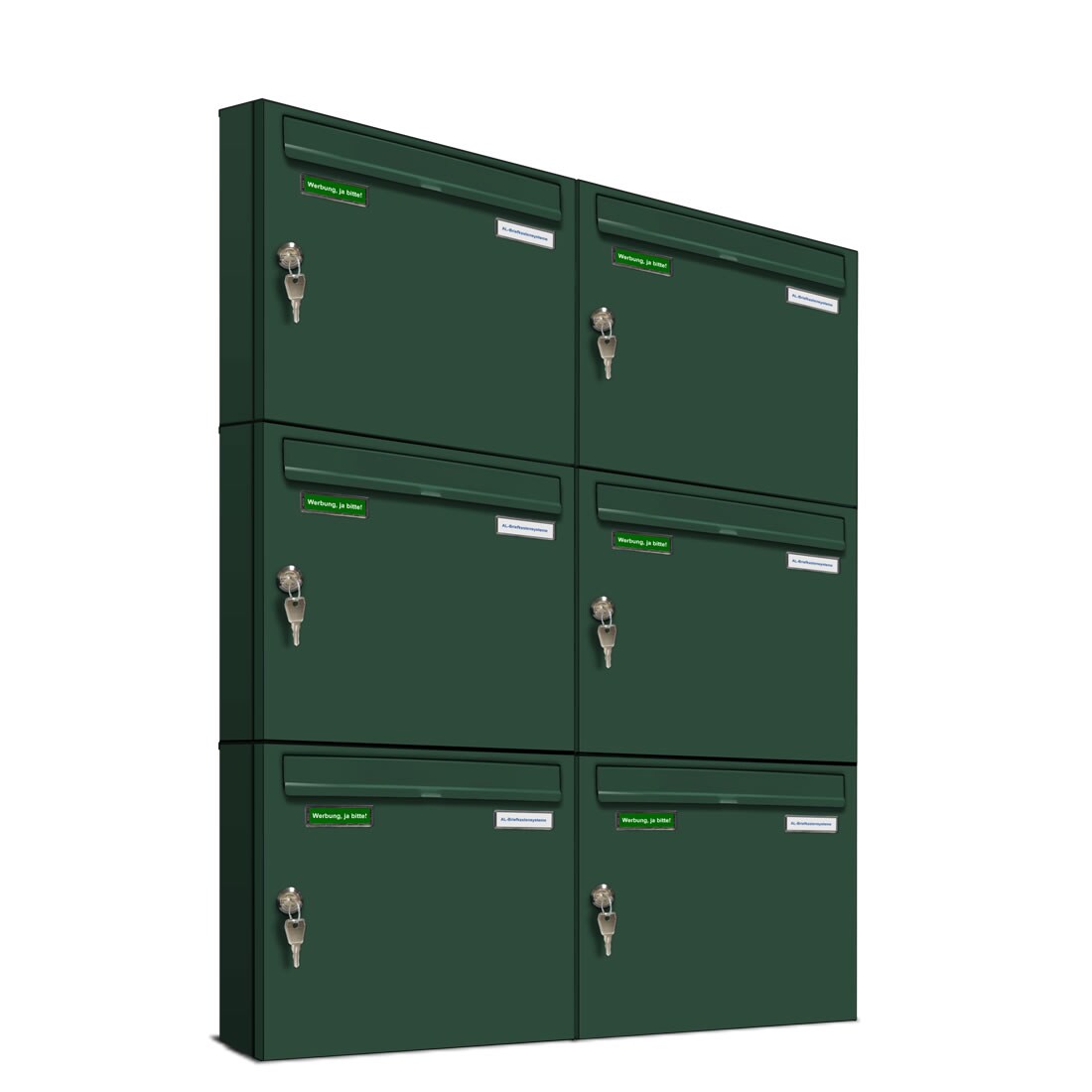 AL Briefkastensysteme 9 x Basic Wand Briefkasten in RAL Farbe 6005 Moos Grün für Post A4, wetterfest, Artikelnummer: 431P9EA3P6005