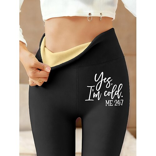 Per donna leggings foderati in pile Leggings Vacanza Essenziale Casual Lunghezza intera Vita Alta Lettera Calore Termico Comodo Confortevole Elasticizzato All'aperto Casual Casuale Nero Rosa Blu Verde