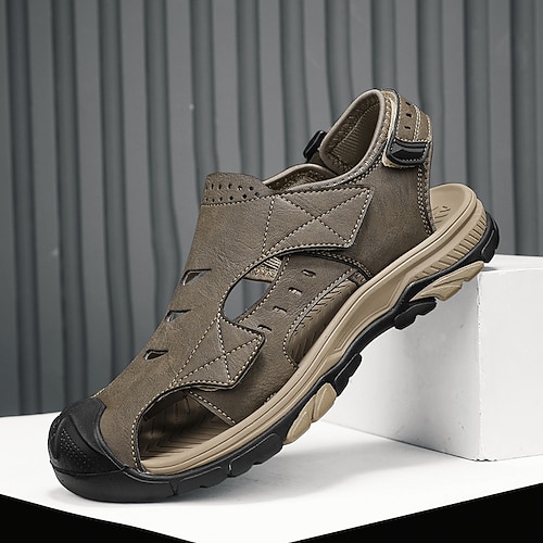 sandali da uomo color cachi, protezione per le dita chiuse, sistema di regolazione della calzata, stile leggero e confortevole per escursionismo, campeggio e uso quotidiano