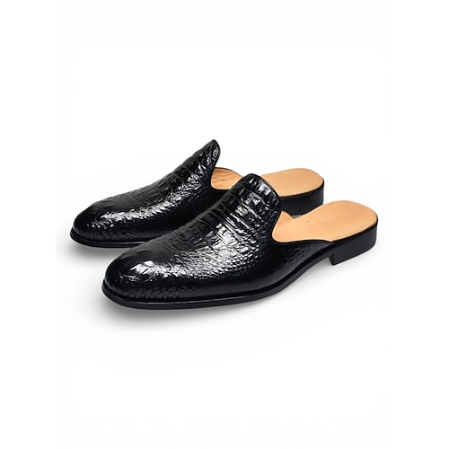 sandali da uomo in similpelle nera con design slip-on e texture coccodrillo, ideali per l'estate, eventi all'aperto e incontri informali