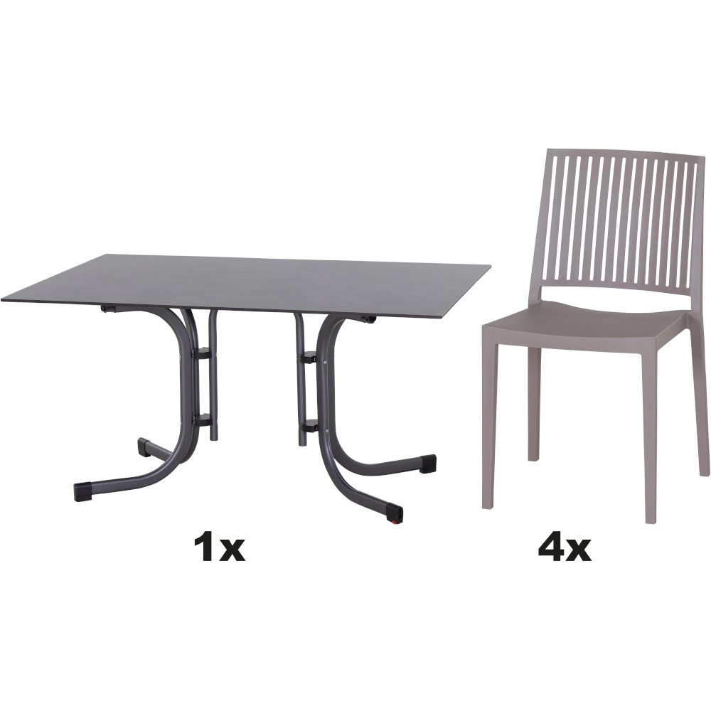 SIENA GARDEN Urban Lights Set 5teilig Lane Stuhl gastrotauglich taupe mit Tisch Sola 140x90