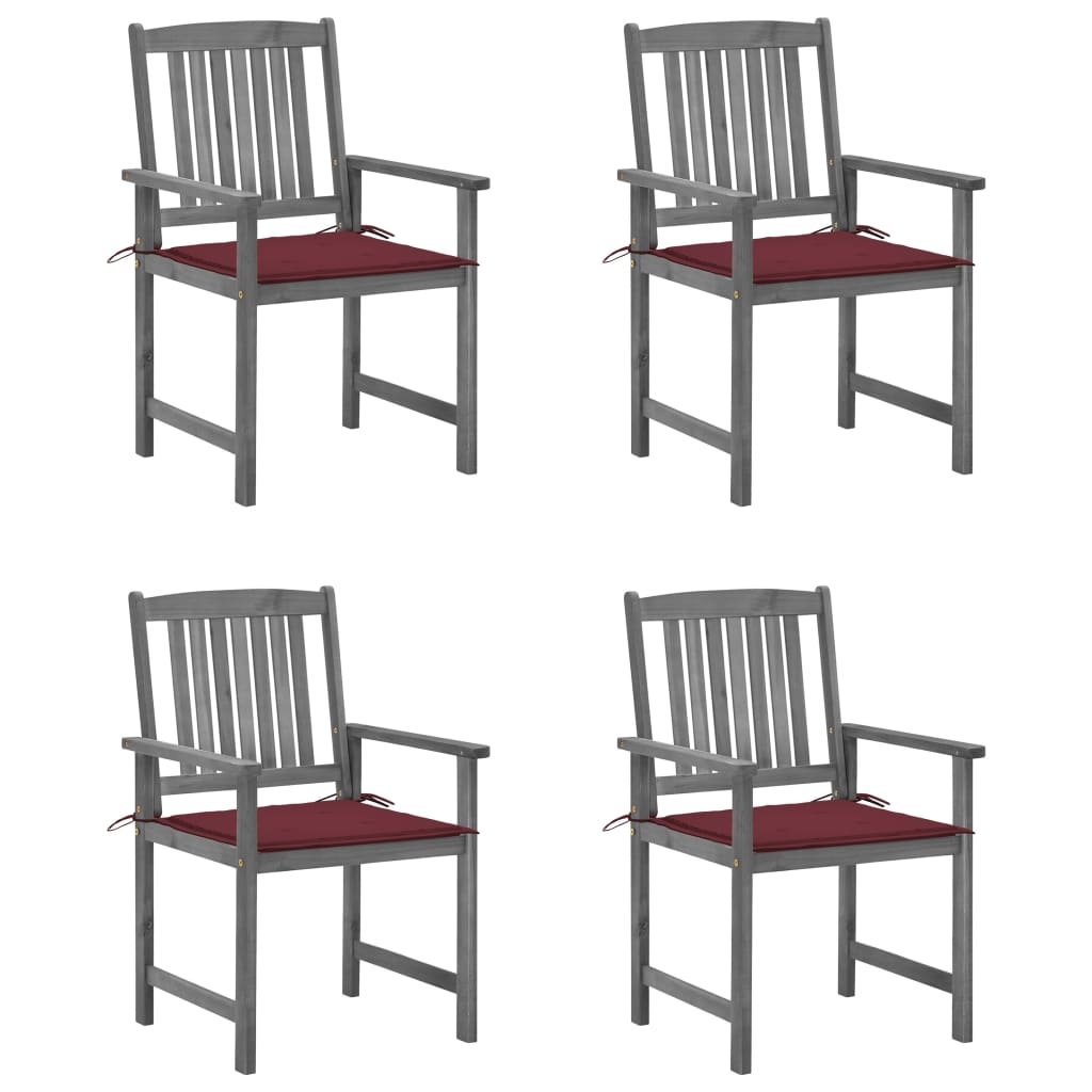 vidaXL 4x Gartenstuhl mit Kissen Holzstuhl Gartensessel Stuhl Stühle Essstuhl Balkonstuhl Terrassenstuhl Gartenmöbel Grau Massivholz Akazie
