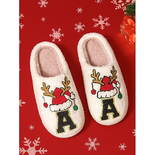 comode pantofole natalizie da donna con design a renna: morbide pantofole con 26 lettere tra cui scegliere, a tema natalizio, perfette per rilassarsi e come regalo