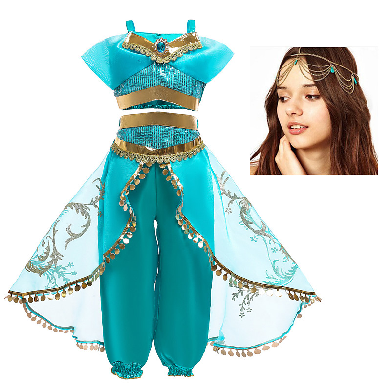 Aladdin and the Magic Lamp Fairytale Princess Jasmine Theme Party Costume Dance Costumes Girls' Movie Cosplay Halloween Carnival Masquerade World Book Day Costumes