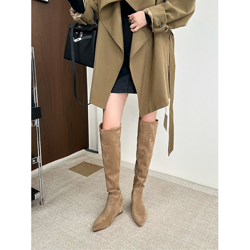 Women's Suede Knee-High Boots, Pointed Toe, Fashionable Heeled Boots for Casual and Evening Wear