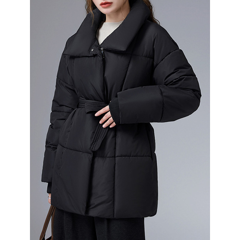Women's Parka Comfortable Breathable Tie Front Pocket Casual Plain Vacation Street Casual Daily Wear Zipper Long Stand Collar Regular Fit Long Sleeve Outerwear Black White Coffee Spring Fall