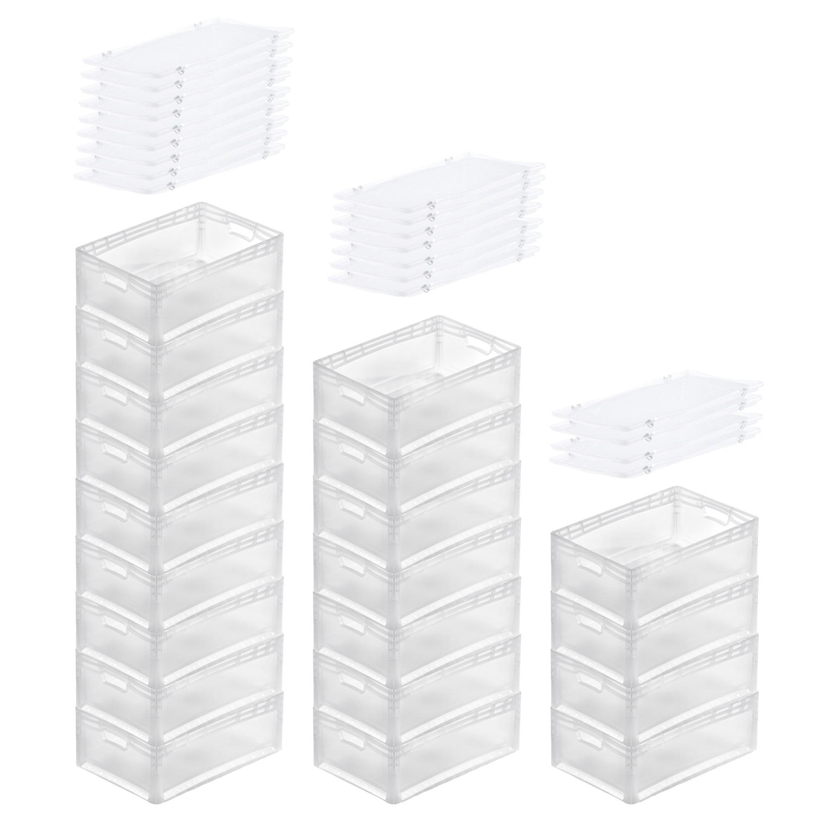 PROREGAL MegaDeal 20x Transparenter Eurobehälter LightLine mit offenem Griff und Auflagedeckel | HxBxT22x40x60cm | 46 Liter | Eurobox