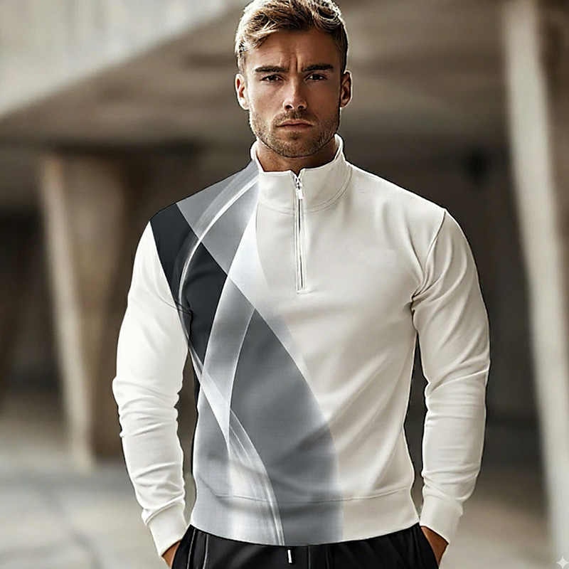 Men's Abstract Geometic Line Polo Long Sleeve Standing Collar Athleisure Vacation Athleisure Casual Daily 3D Print Spring Fall Winter Blue Black Red
