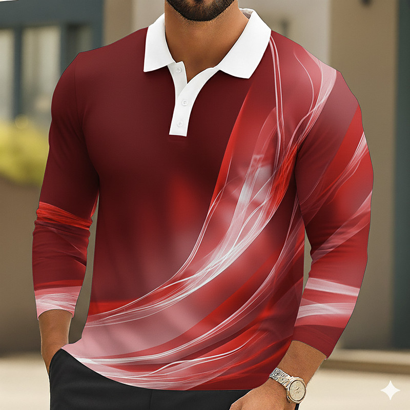 Men's Abstract Geometic Polo Long Sleeve Polo Shirts Lapel Casual Street Athleisure Daily Wear 3D Print Buttons Spring Fall Winter Blue Red Green