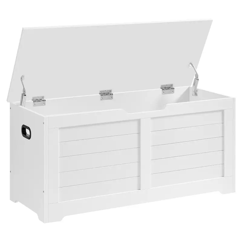 VASAGLE Banc de rangement moderne avec 2 charnières de sécurité, boîte à chaussures et à couvertures, 40 x 100 x 46 cm, blanc mat