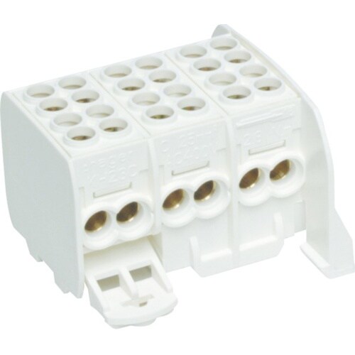 Hager Hauptleitungsklemme, 12Eing, 3pol, schrauben, reinweiß, Berührungssicher, DIN-Schiene, 1,5-25qmm/Zu, 1,5-16qmm/Ab, geeignet für feindrähtige Leite