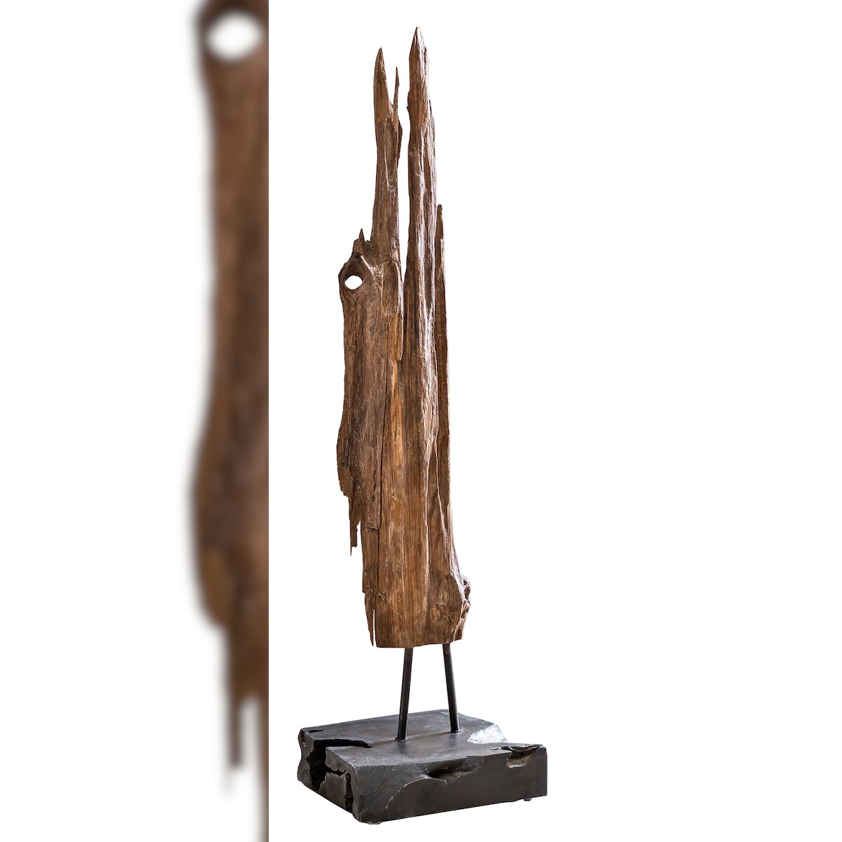 SIT Möbel Treibholzskulptur | recyceltes Teakholz natur | Bodenplatte schwarz | B 30 x T 30 x H 100 cm | 07900-20 | Serie ROMANTEAKA