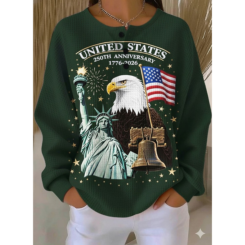 American 250th Women's Pullover Sweatshirt Graphic Elegant Vintage Fashion Long Sleeve Crew Neck Round Neck Regular Tops Casual Home Wedding Guest Buttons Blue Spring Fall Winter