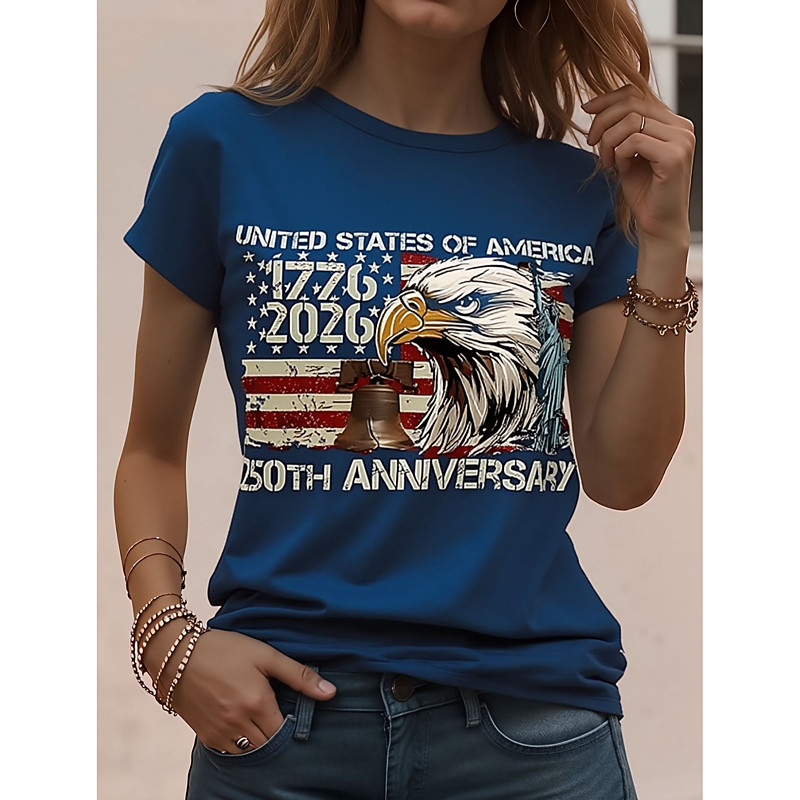 American 250th Women's T Shirt Graphic National Flag Vintage Independence Day Stylish Classic Short Sleeve Crew Neck Round Neck Regular Tops Daily Weekend Print Blue Summer Spring Fall Winter
