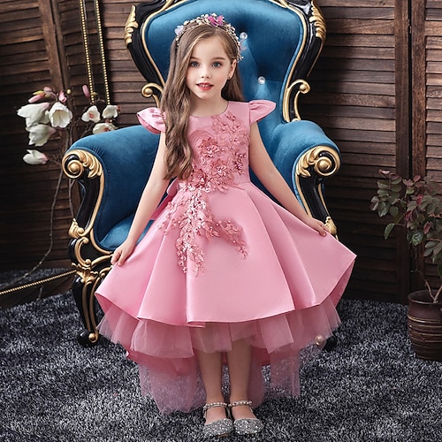 Abito da damigella d'onore bambina Ragazze Abito formale Abiti da sposa Feste Matrimonio Formale Moda Adorabile Principessa Patchwork Rete Floreale Senza Maniche Girocollo Rosa Rosso Dai 4 anni in su