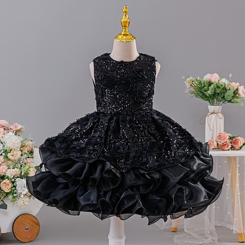 Abito da damigella d'onore bambina Ragazze Abito formale Abiti da sposa Feste Matrimonio Formale Moda Adorabile Principessa Abito per la Prima Comunione Paillettes Rete Tinta unica Senza Maniche