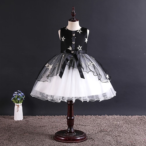 Abito da damigella d'onore bambina Ragazze Abito formale Abiti da sposa Feste Matrimonio Formale Adorabile Principessa Bello Patchwork Rete Stella Senza Maniche Girocollo Blu Nero Dai 4 anni in su
