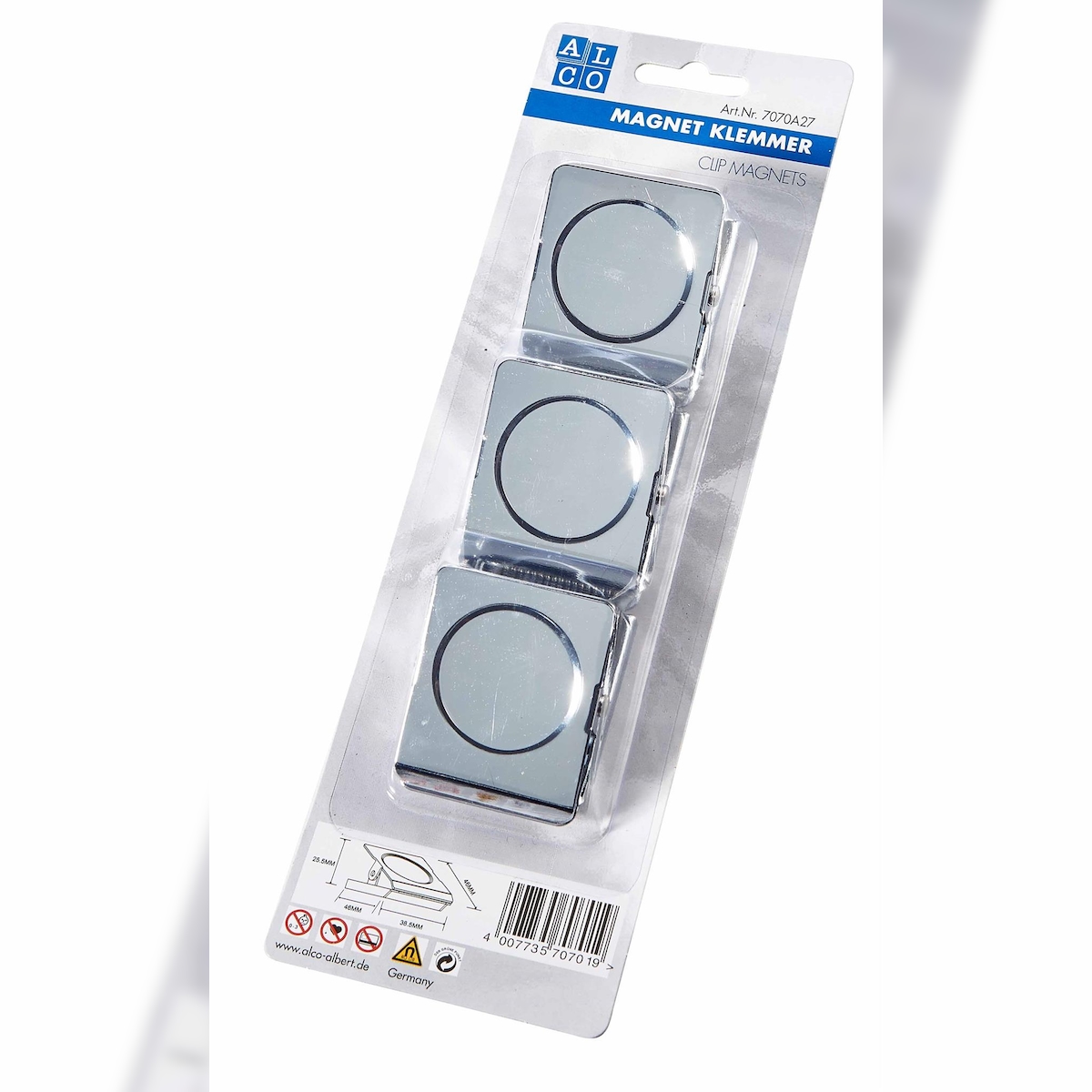 Alco Magnetklemmer 38x45mm silber 3 Stück
