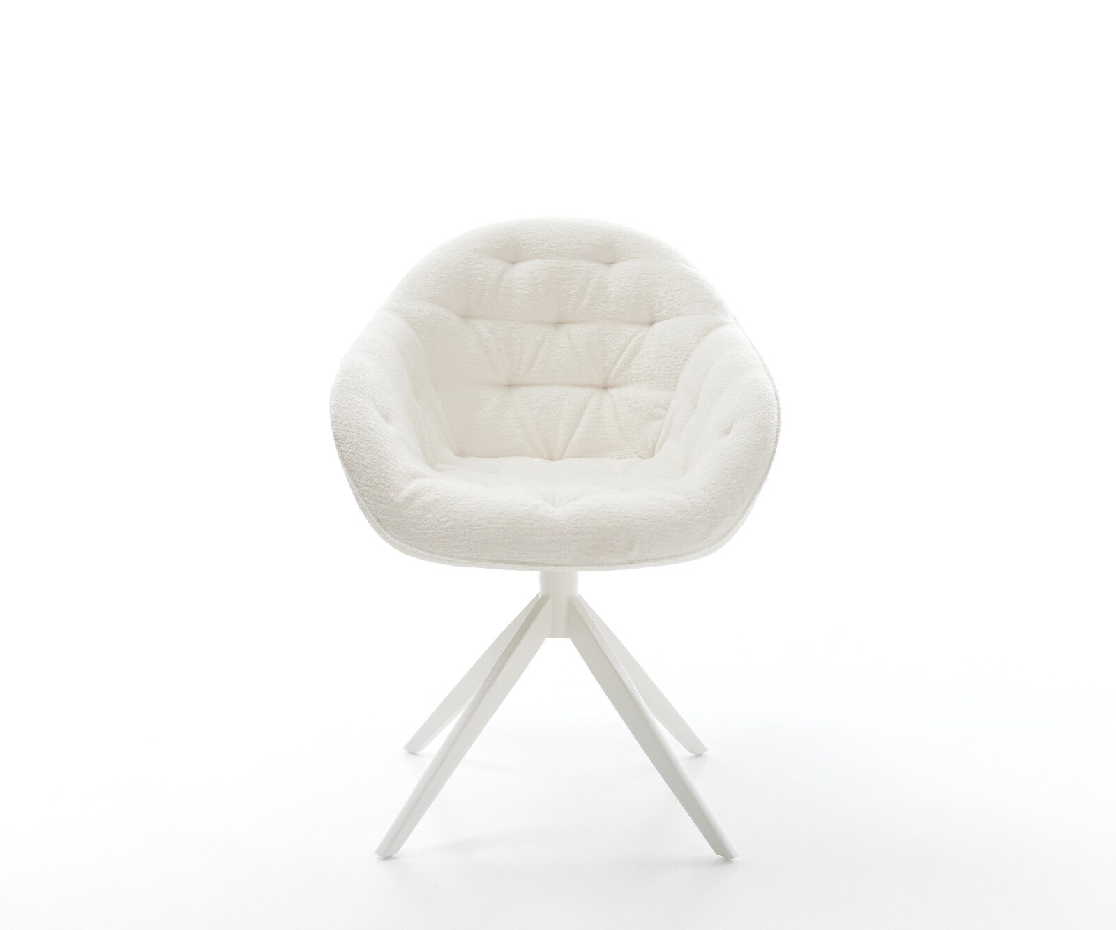 DELIFE Draaistoel Gaio-Flex bouclé zacht beige kruisframe breed wit 360° draaibaar rocker-functie