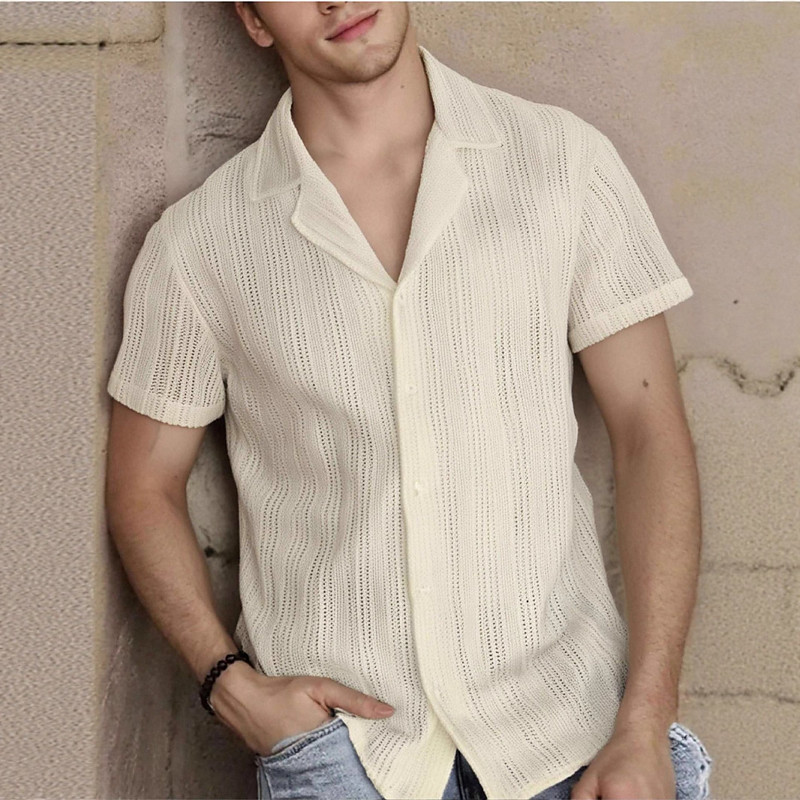 Men's Shirt Casual Shirt Button Up Shirt Black White Camel Apricot Short Sleeve Plain Textured Cuban Collar Casual Streetwear Jacquard Clothing Apparel Elegant Fashion Casual