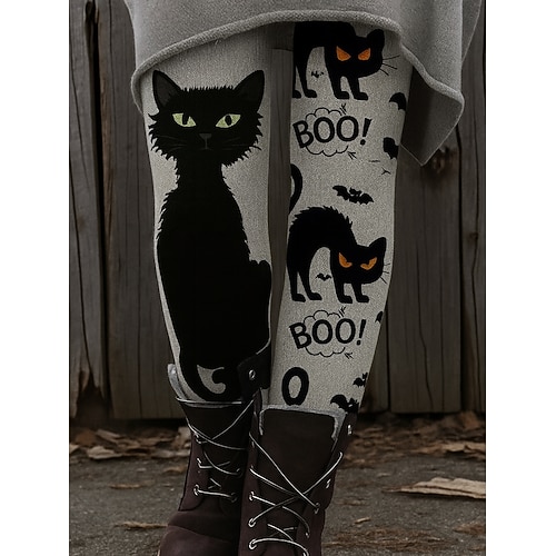 Per donna Leggings Vacanza Vintage Stile Etnico Lunghezza intera Vita AltaPantsHalloween Grafico Animale Gatto Stampa 3D Asciugatura Rapida Traspirabilità Morbido Elasticizzato All'aperto Casa Casual