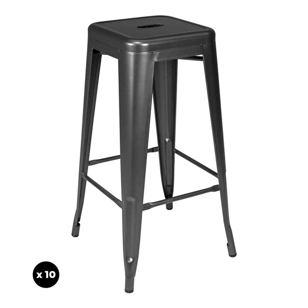 Set di 10 sgabelli bar cucina impilabili industriali in metallo grigio