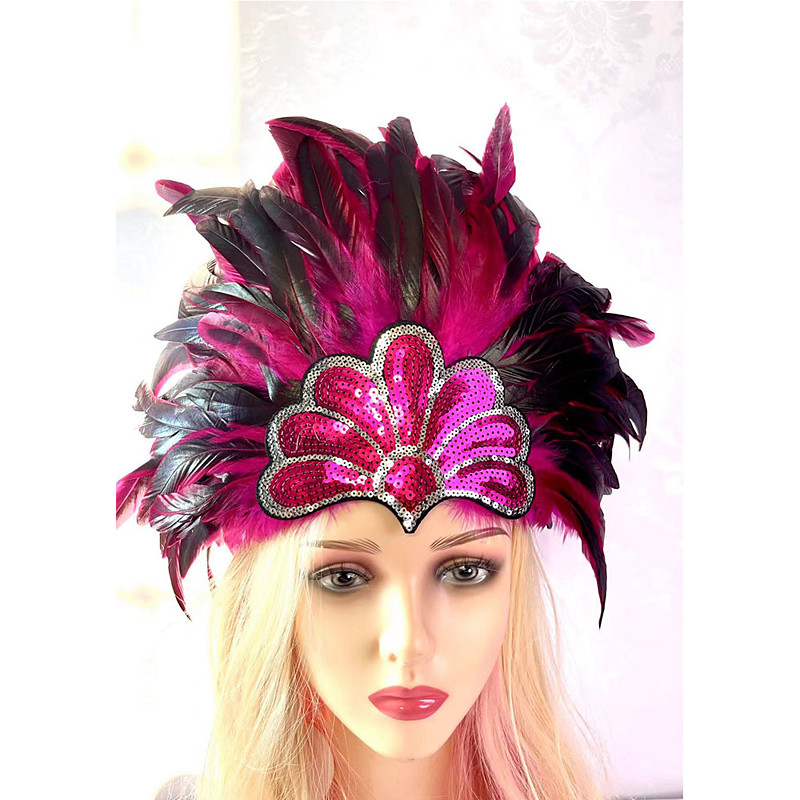 Carnival 2026Rio Carnival Samba Accessories Carnival Feather Mask Headpiece Red, Orange White Full Feathered Masquerade Mask Brazil Festival Performance Costume