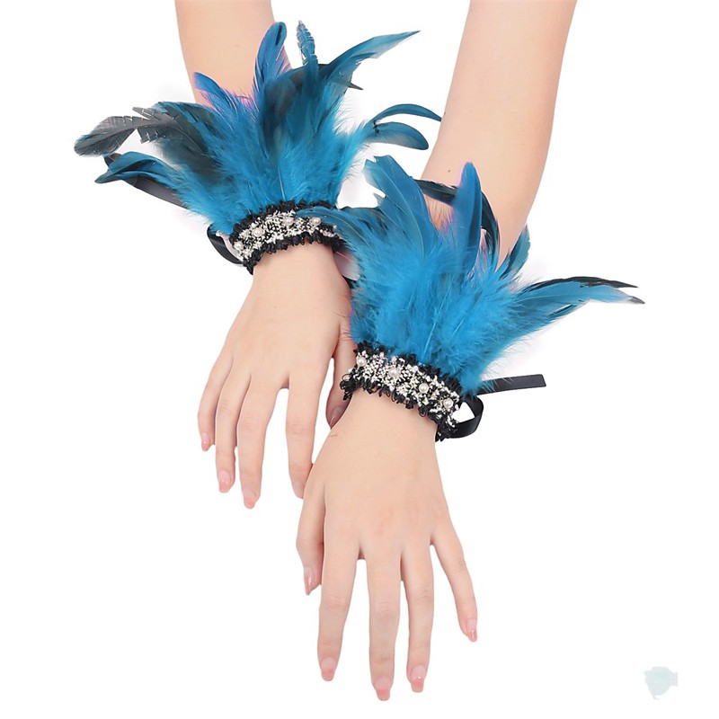 Carnival 2026Rio Carnival Samba Accessories Women's Green Feather Wrist Cuffs with White Pearl Lace Brazil Festival Performance Costume
