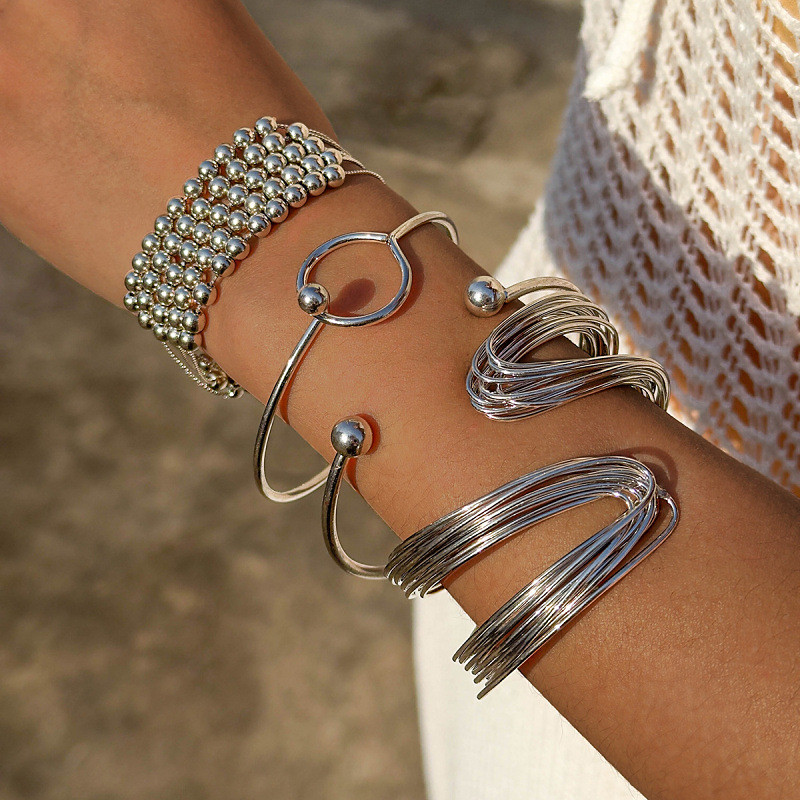 Carnival 2026Rio Carnival Samba Accessories Mixed Style Silver Bracelets for Women - Layered Coil Wire Bangles,Brazil Festival Performance Costume