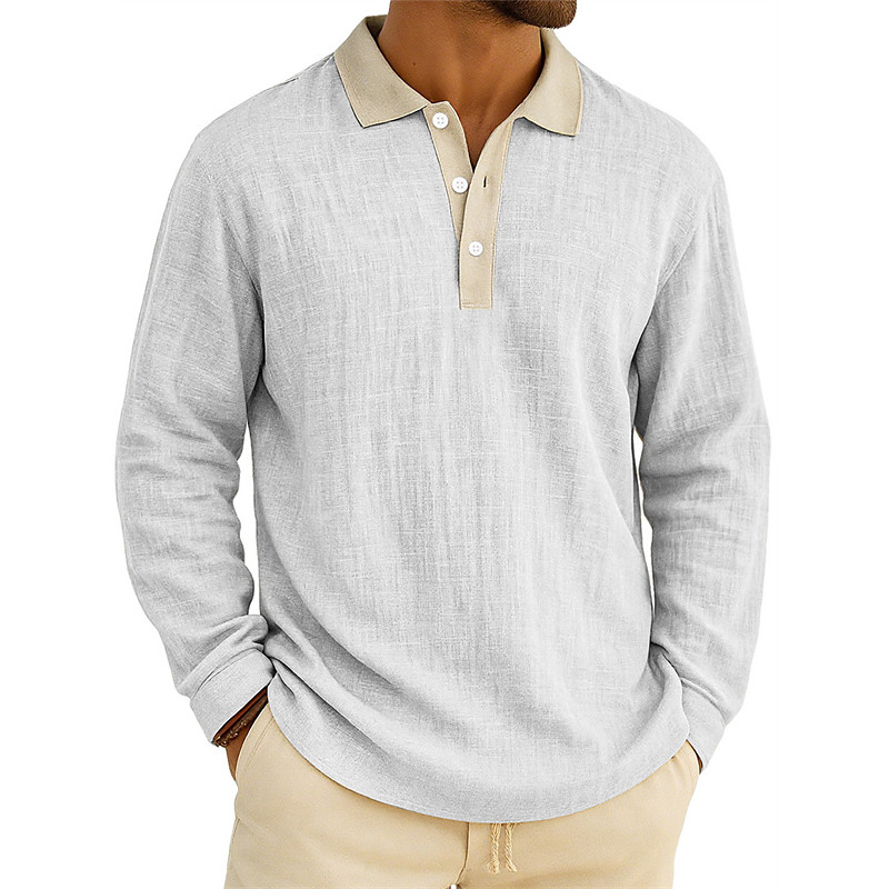 Men's Golf Shirt Golf Polos Shirts Work Casual Lapel Long Sleeve Basic Modern Color Block Patchwork Buttons Spring Fall Regular Fit Deep Green Black White Light Green Dark Blue Red Golf Shirt