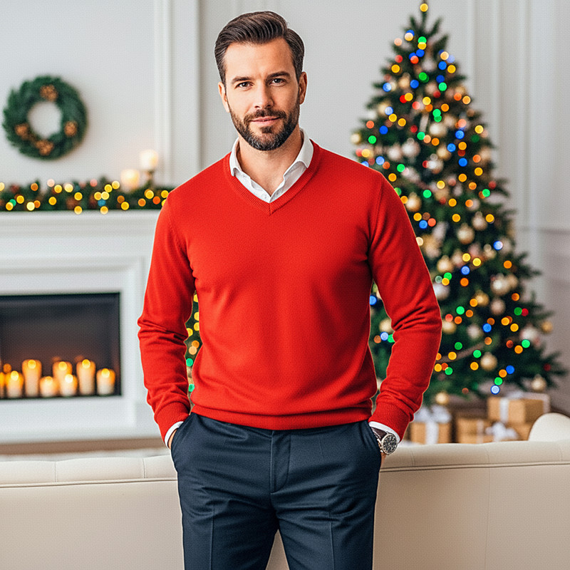 Men's Sweater Wool Sweater Pullover Ribbed Knit Cropped Knitted Solid Color V Neck Keep Warm Modern Contemporary Christmas Work Clothing Apparel Fall Winter Blue Camel S M L