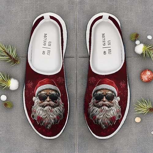 scarpe slip-on da uomo con Babbo Natale - design natalizio con Babbo Natale, comode calzature invernali per feste di Natale, relax e vacanze