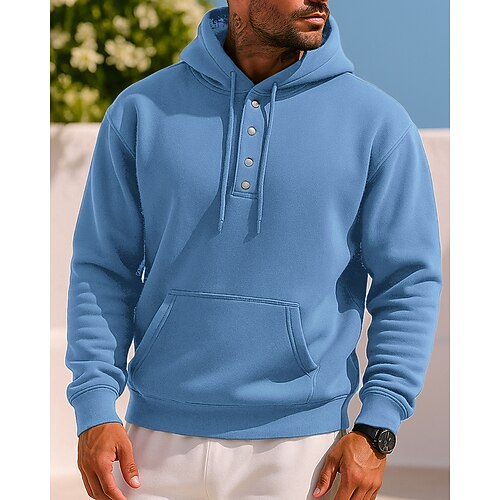 Per uomo Felpa casual Felpa con cappuccio Bottoni Manica Lunga Top Athleisure Tinta unita Di tendenza Caldo All'aperto Viaggio Sportivo abbigliamento sportivo Abbigliamento sportivo Rosso bordeaux
