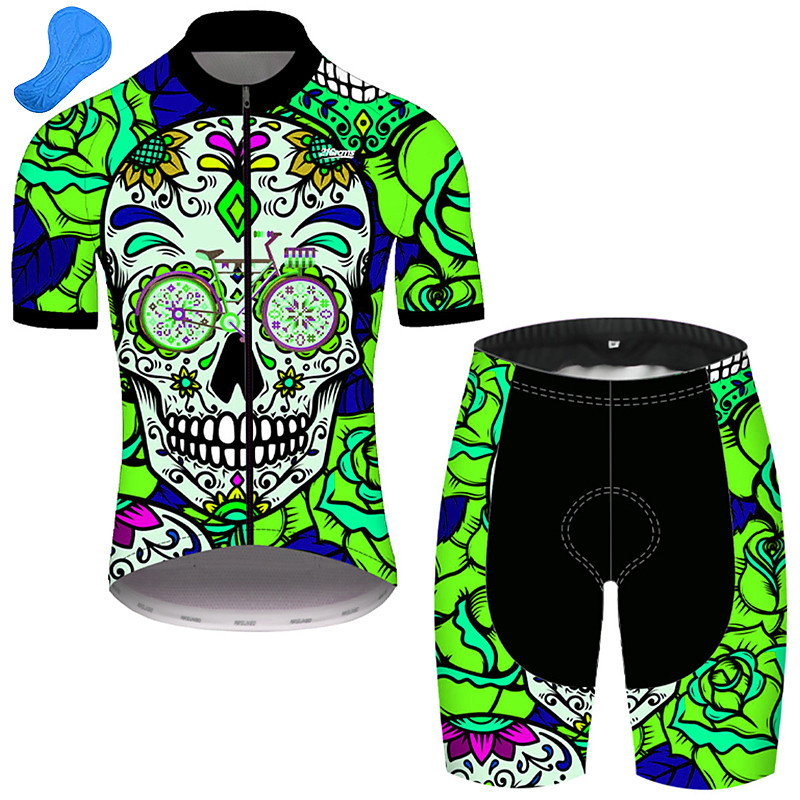 Men's Cycling Jersey with Shorts Short Sleeve Mountain Bike MTB Road Bike Cycling Blue Green GreenYellow Skull Sugar Skull Floral Botanical Bike 3D Pad Quick Dry Ultraviolet Resistant Reflective