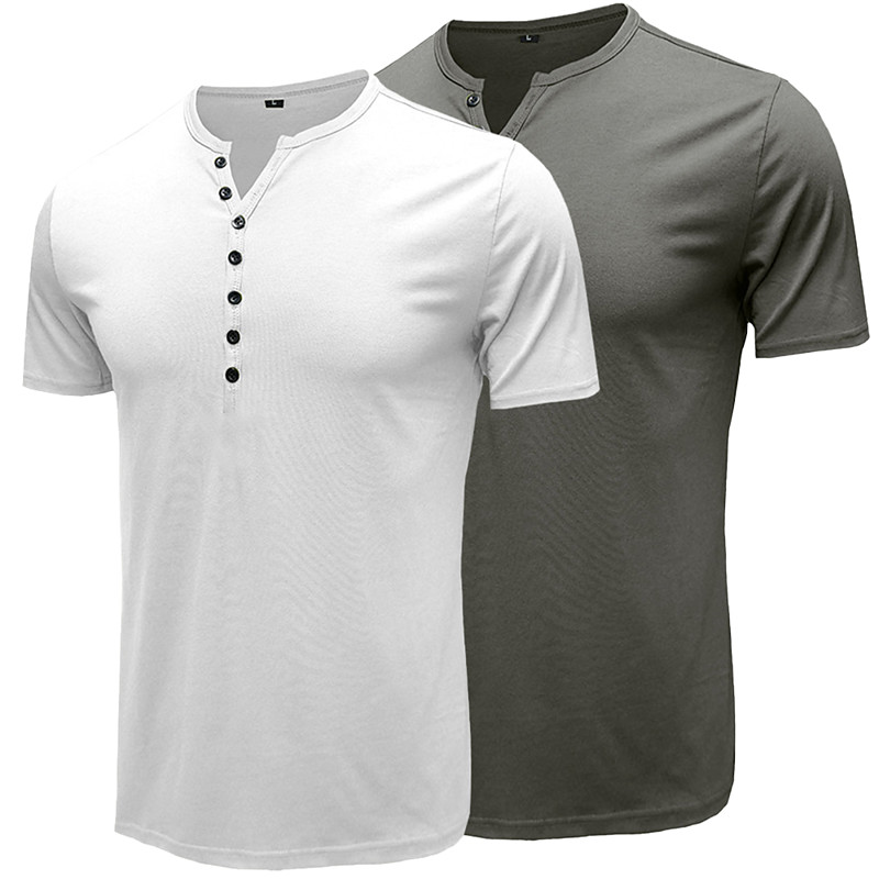 Men's Henley Shirt Henley Top Cotton Blend T-Shirt Short Sleeve Solid Color Plain Vintage Casual Basic Henley Outdoor Causal Casual Spring Fall Spring Fall 1# 2# 3# Henley T-Shirt