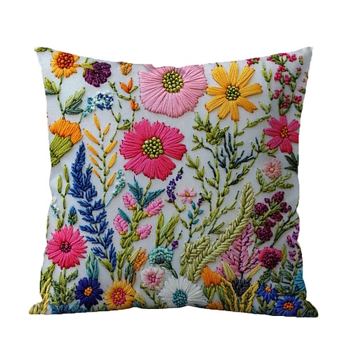 Federa per cuscino con motivo floreale, stampa piatta 2D, morbida e confortevole, con ricamo finto, per soggiorno, divano, camera da letto, decorazione per la casa