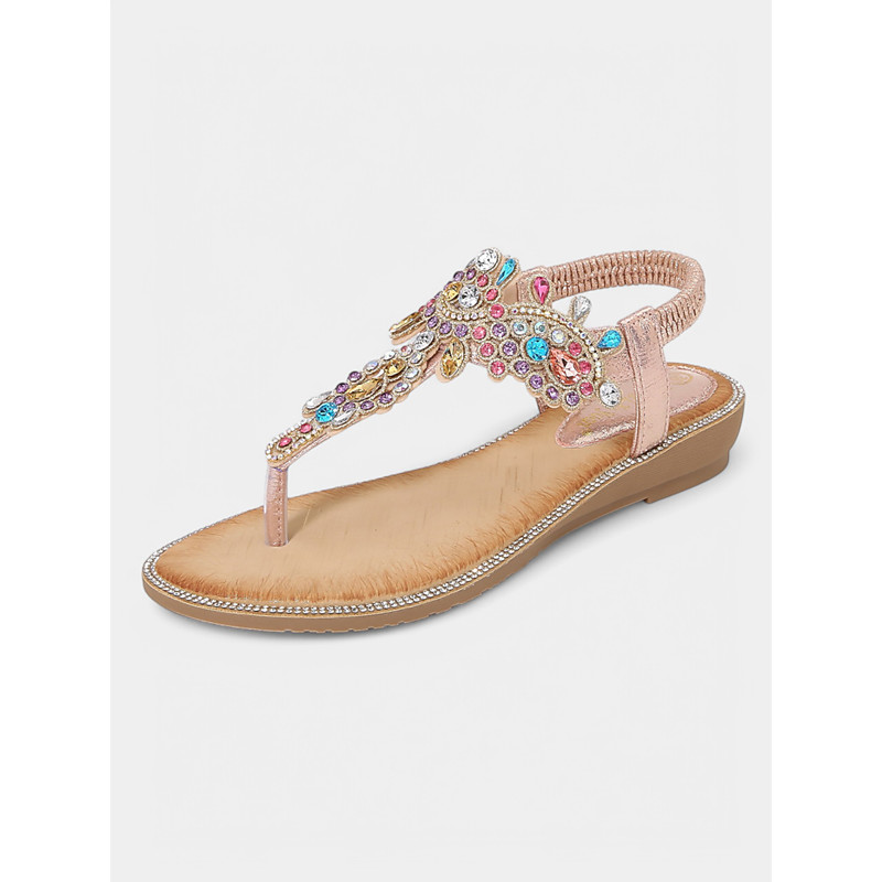 Women's Gold Rhinestone T-Strap Heeled Sandals - Crystal Embellished Slip-On Party Shoes for Nightlife and Club Events