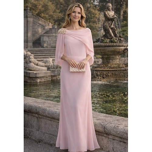Linea ad A Abito Lunghezza al pavimento Abito da invitata a nozze Abito Formale Abito da sera Abito da cerimonia per signora Manica 3/4 Scollo a Barca Elegante Semplice Minimalista Formale Chiffon