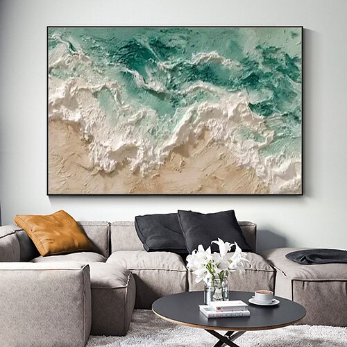 Mintura handgemaltes 3D-Ölgemälde mit Strandwellen-Textur auf Leinwand, modernes Wandbild für die Heimdekoration, fertig zum Aufhängen mit gespanntem Rahmen