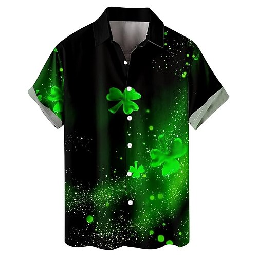 Herz Buchstabe Brautkleider schlicht Herren Hemd Freizeitskleidung Ausgehen Wochenende Herbst Umlegekragen Kurze Ärmel Dunkelgrün, Grün S, M, L 4-Wege-Stretchgewebe Hemd St. Patrick