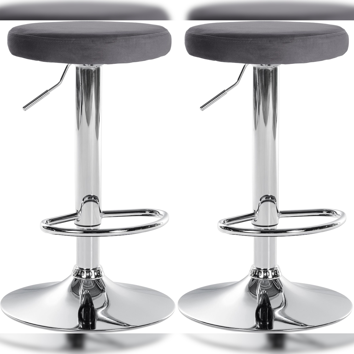 DELUKE 2er Set Barhocker KAZON - Samt Dunkelgrau 38.5x38.5x60 cm Silber | Barstuhl Höhenverstellbar Drehbar Tresenhocker Tresenstuhl Kneipenhocker