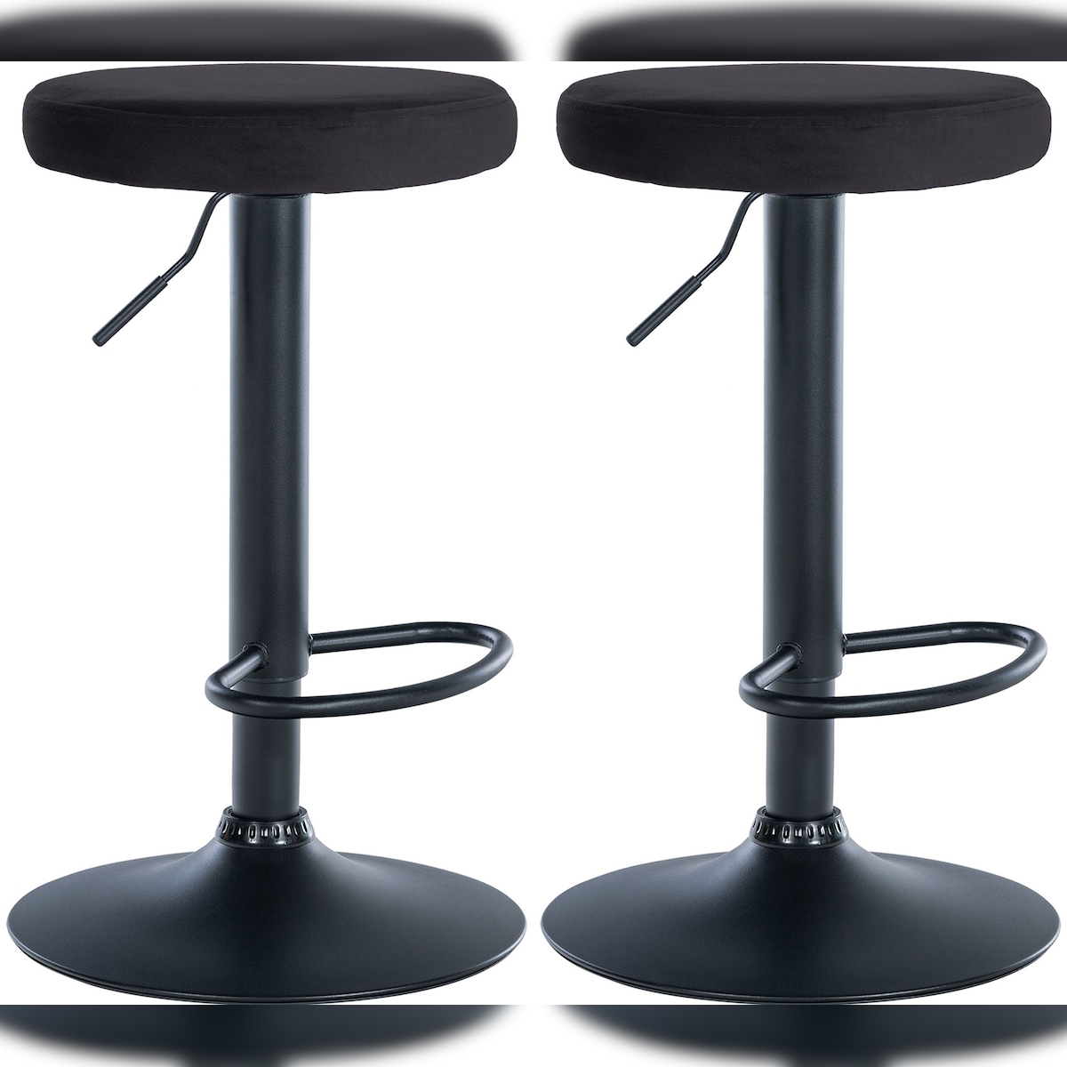 DELUKE 2er Set Barhocker KAZON - Samt Schwarz 38.5x38.5x60 cm Schwarz | Barstuhl Höhenverstellbar Drehbar Tresenhocker Tresenstuhl Kneipenhocker Kneipenstuhl