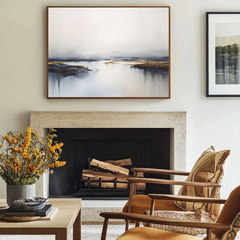 Gray Sky Cloud Abstract Wall Art Minimalist Landscape Painting Modern Acrylic Painting on Canvas Large Wall Art Bedroom Living Room Painting