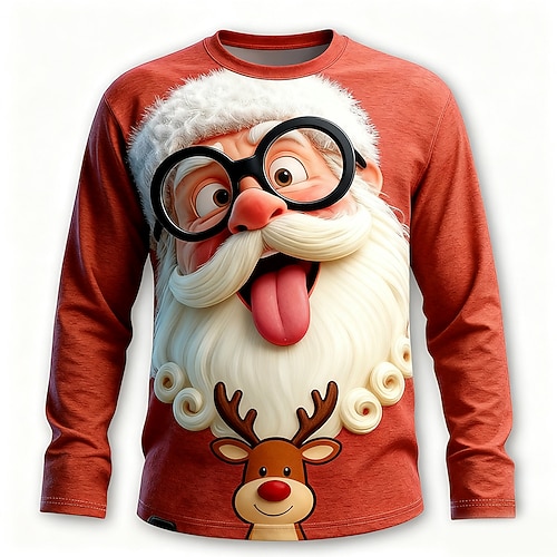 Weihnachten Herren Weihnachtsmann Lustig T Shirt Langarm T-Shirt 3D-Druck Rundhalsausschnitt Hemd Mode Basic 3D Straße Lässig Täglich Rote Sommer Frühling Bekleidung S M L XL XXL XXXL