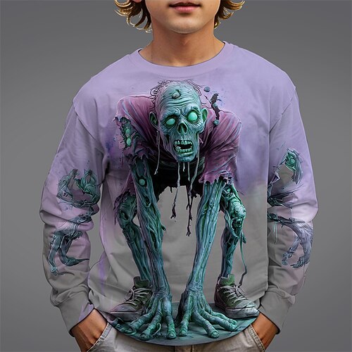 Herren 3D Lustige Emotes T Shirt Langarm T-Shirt 3D-Druck Rundhalsausschnitt Hemd Mode Übertrieben Straße Täglich Schwarz Gelb Blau Sommer Frühling Herbst Bekleidung S M L XL XXL XXXL