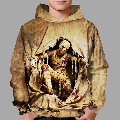 Halloween Jungen 3D Schädel Kapuzensweatshirt Langarm Frühling Herbst Mode Streetwear Kinder 4-12 Jahre Mit Kapuze Outdoor Lässig Täglich Normale Passform