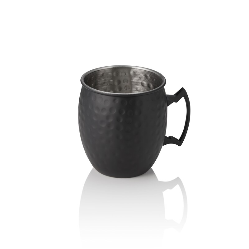 8x Moscow Mule Nocturn, 0,5 ltr., Ø 9 cm, Höhe 10 cm, schwarz matt, gehämmert, Chromnickelstahl 18/10