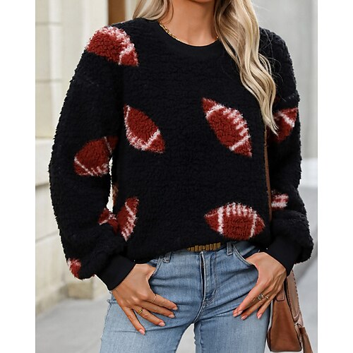 Per donna Felpa Pullover Felpe Zucca Streetwear Casual Manica Lunga Girocollo Top Regolari Ferie Uscire Stampato Nero Arancione Inverno